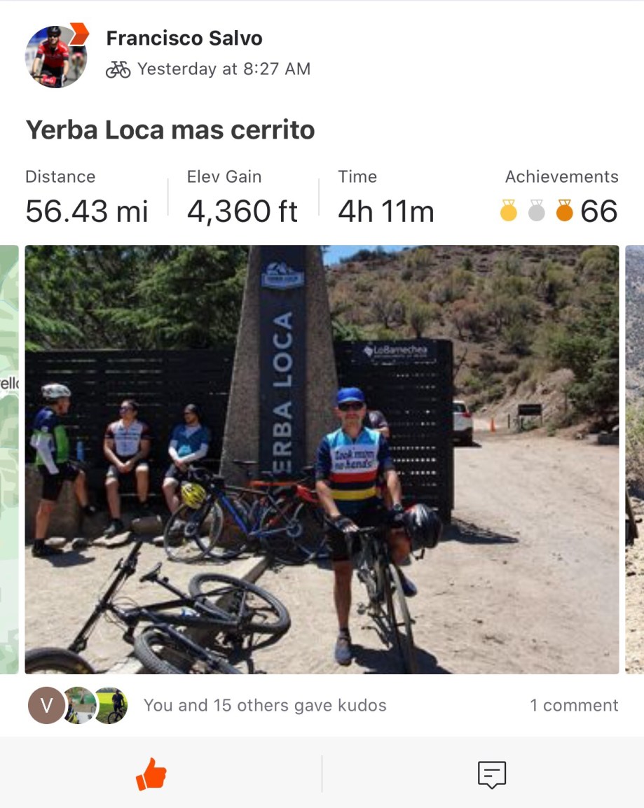 I saw a guy I follow on Strava (Francisco Salva) went for a ride yesterday… 45 miles with 4000 ft of elevation. Pretty hardcore!
