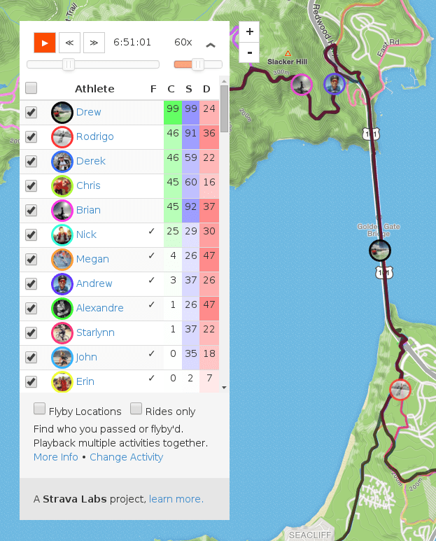 - Flybys. Once on the desktop you can view your completed ride and see others that were out and about near you using Strava, you could then choose to follow these riders, who knows you could even start a friendship.